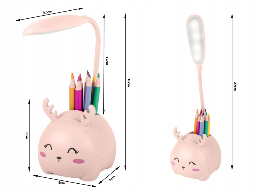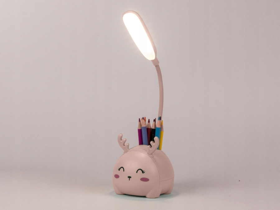 Lampa doskonale służy jako organizator na przybory do pisania i jako stojak na telefon.