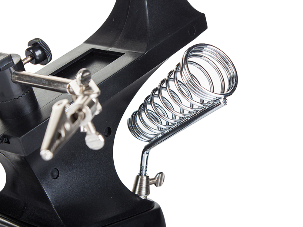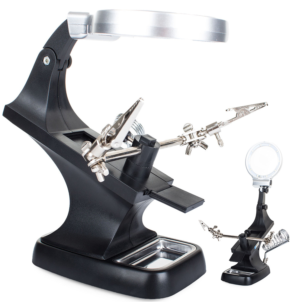 Ma silne krokodylki, które mocno trzymają obrabiany przedmiot, i w pełni regulowane stawy dla żądanego mocowania. Dzięki dużemu szkłu powiększającemu i 10× diodzie LED obraz jest bardzo jasny i czytelny.