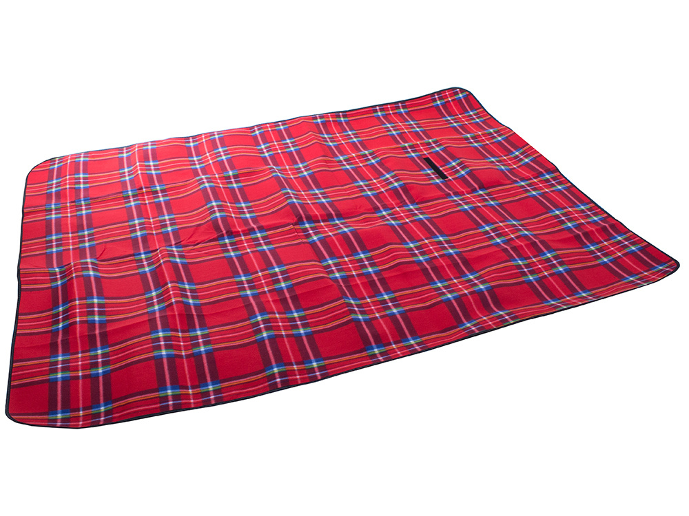 Zewnętrzna część koca jest wykonana z przyjemnego i miękkiego materiału, podczas gdy dolna część z wodoodpornej pianki. Zapewnia miękkość, izolację i komfort podczas używania.