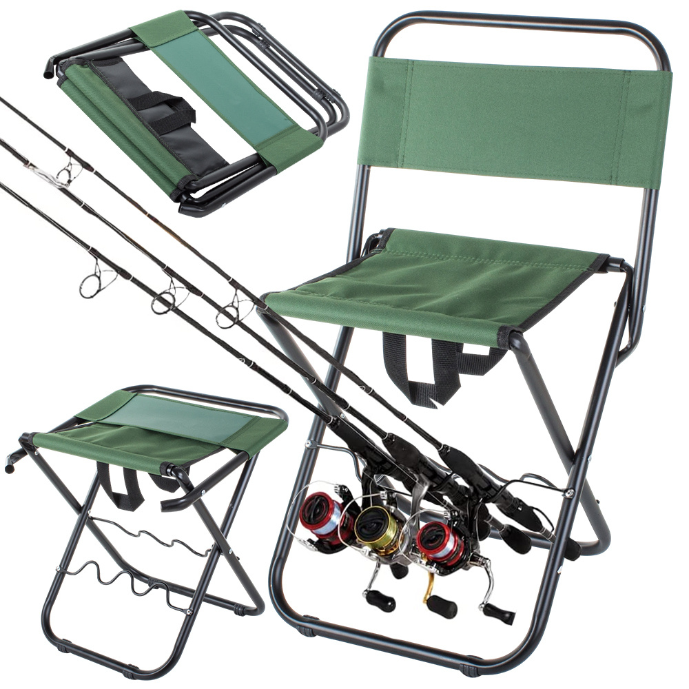 SKŁADANE KRZESŁO WĘDKARSKIE Z UCHWYTEM NA WĘDKĘ (ZIELONE)