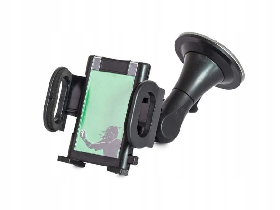 Uniwersalny uchwyt samochodowy, idealny do montażu na przedniej szybie samochodu. Przyssawka trzyma bardzo mocno i posiada specjalny system mocowania, który zapobiega wypadaniu.