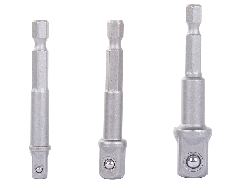 Zestaw specjalnych redukcji, adapterów do wkrętarek. Redukcje umożliwiają użycie wkrętarki z nasadkami. Elementy zestawu są wykonane ze stali, co gwarantuje ich wytrzymałość i długą żywotność.