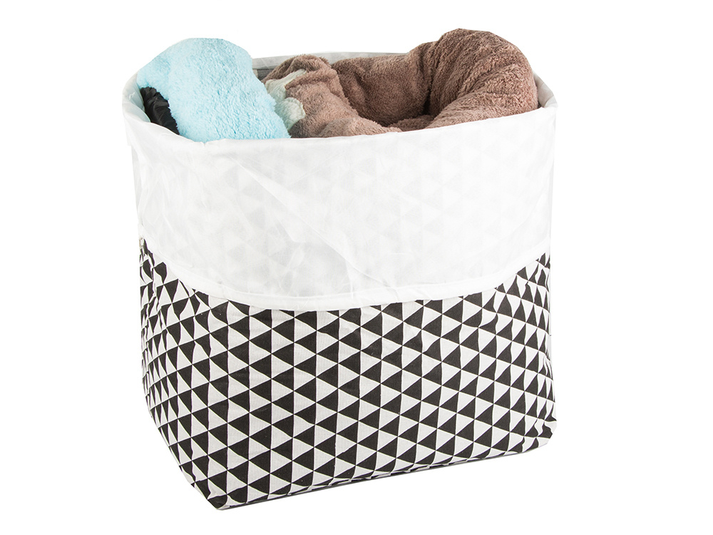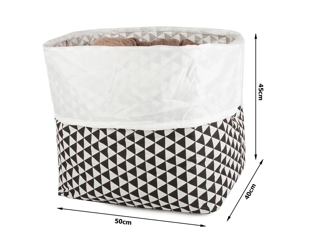 Składany kosz z wytrzymałego materiału umożliwia przechowywanie różnorodnych rzeczy. Jest lekki i praktyczny, można go umieścić wszędzie. Pojemnik doskonale nadaje się do przechowywania ubrań, skarpet, pościeli, butów i wielu innych rzeczy.