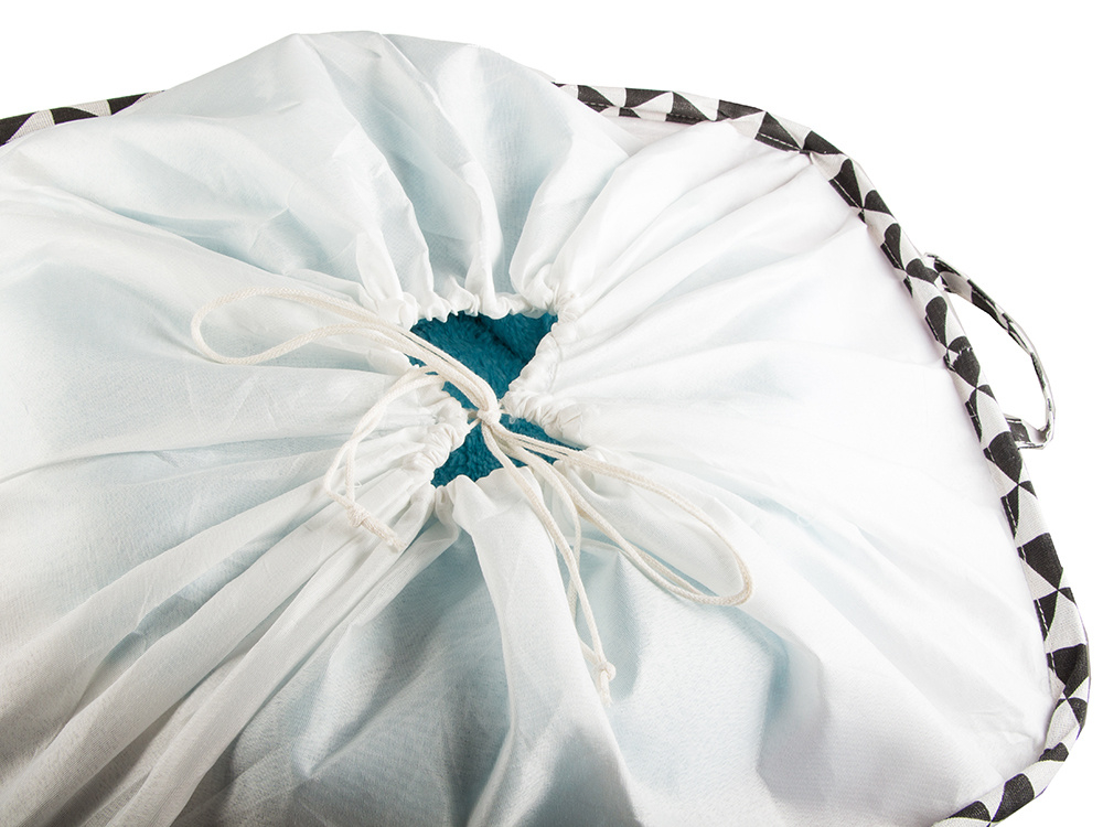 Kosz jest wyposażony w zamknięcie z plecionej sznury, które można zawiązać lub obrócić do wewnątrz lub na zewnątrz kosza, w razie potrzeby.