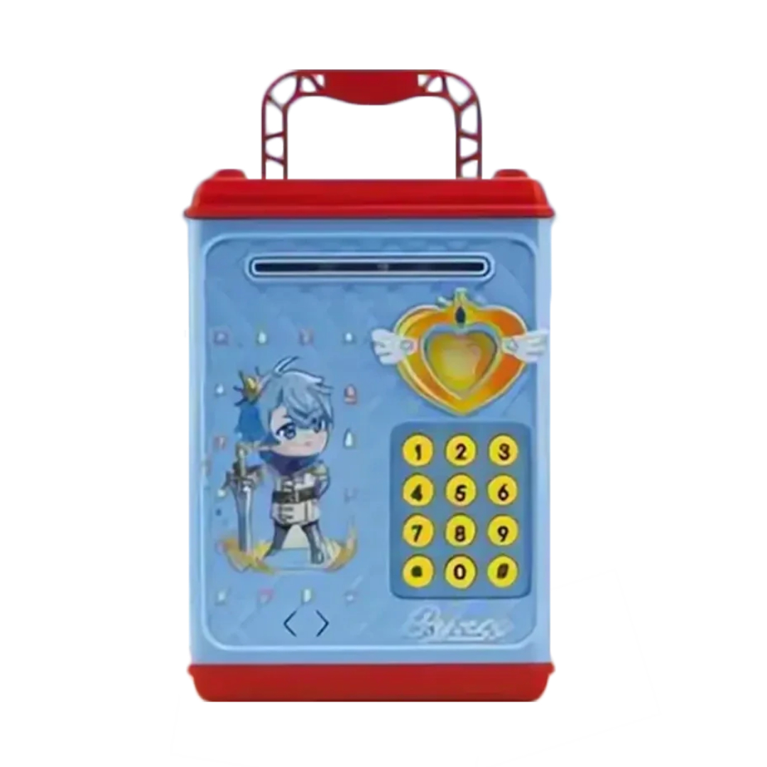 Użycie sejfu jest intuicyjne – po włożeniu pieniędzy wystarczy nacisnąć przycisk otwierania zamka, wprowadzić kod PIN (wstępnie ustawiony kod to 0000) i otworzyć sejf. Jeśli skarbonka pozostanie zbyt długo otwarta, uruchomi się alarm, co dodaje autentyczności i utrzyma dzieci podekscytowane przy oszczędzaniu.