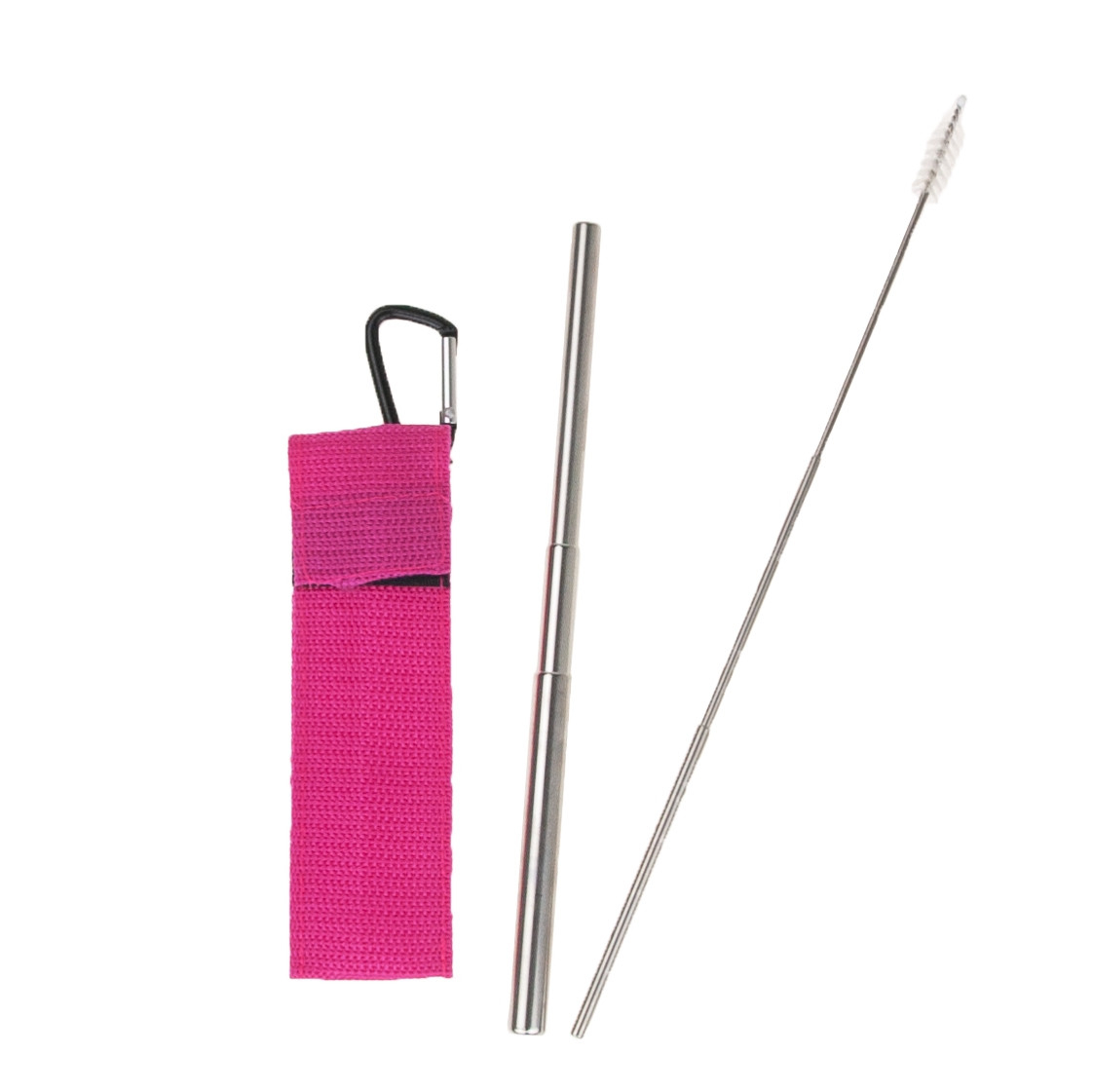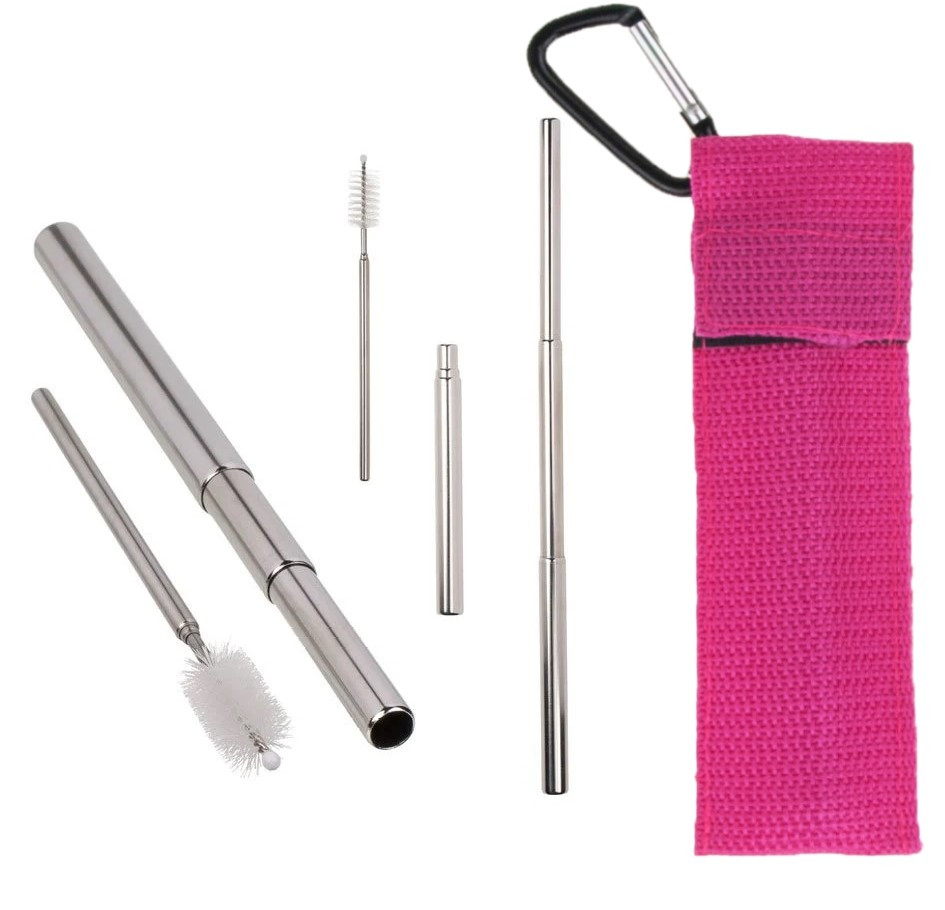 Składana słomka wykonana z najwyższej jakości stali nierdzewnej. Długość słomki jest regulowana od 100 do 230 mm, co sprawia, że jest odpowiednia do szerokiej gamy szklanek i filiżanek. Zestaw zawiera teleskopowy czyścik, który po użyciu można umieścić wewnątrz słomki. Cały zestaw jest przechowywany w eleganckiej obudowie w formie breloka. Dzięki swoim niewielkim rozmiarom zestaw idealnie nadaje się do użytku poza domem.