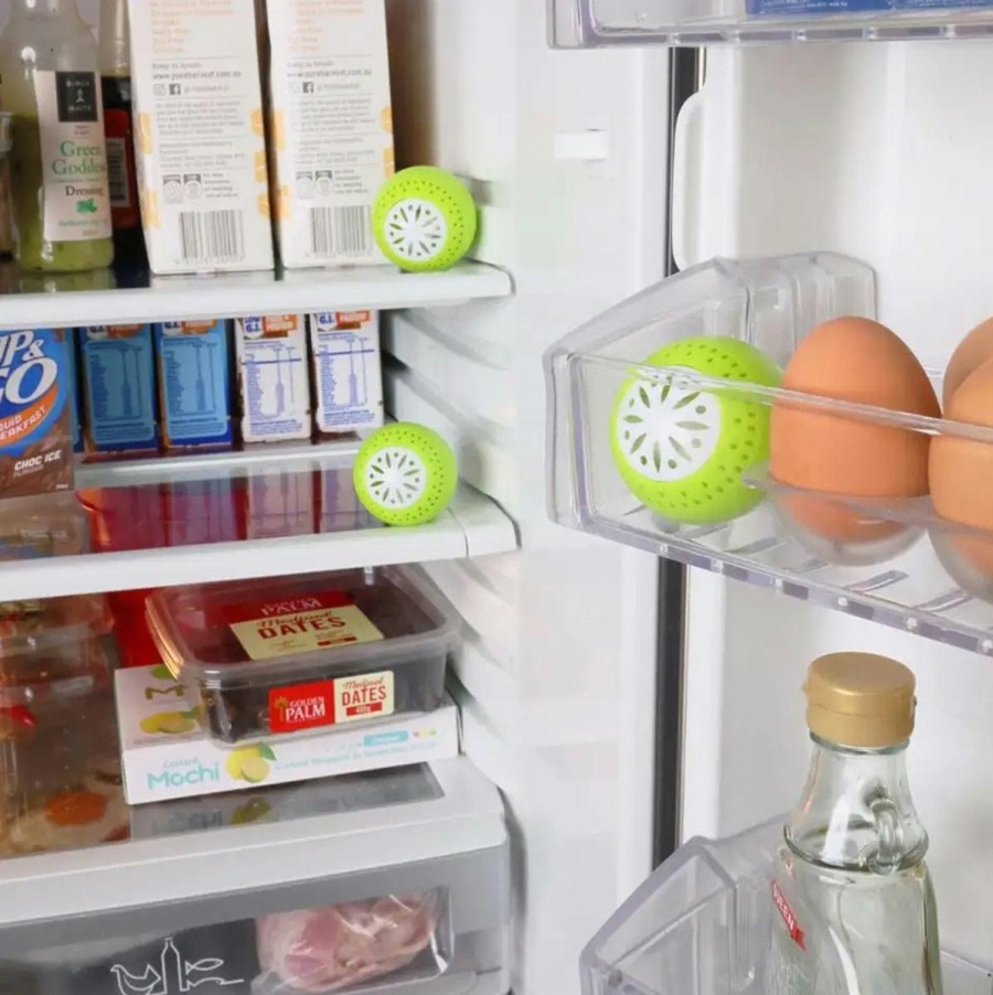 Zestaw 3 kulek pochłaniających zapachy. Świetnie nadają się jako pochłaniacz zapachów do lodówki. Skutecznie absorbuje wilgoć i eliminuje bakterie, dzięki czemu żywność pozostaje dłużej świeża.