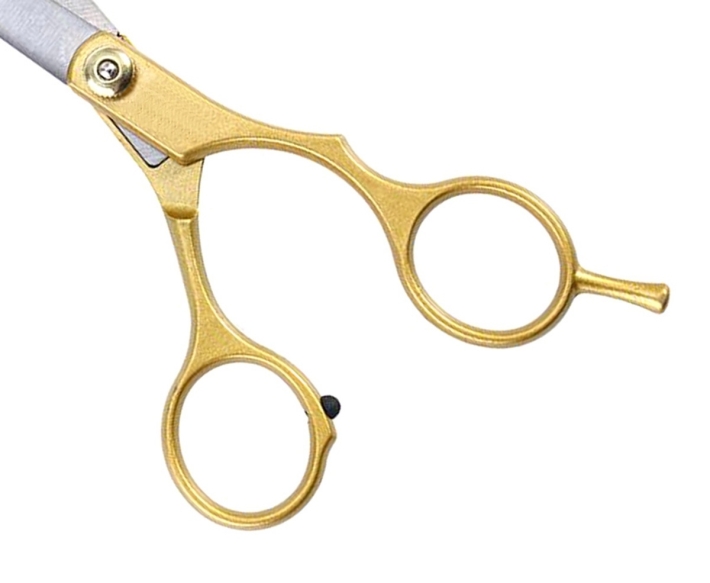 Ergonomiczne nożyczki fryzjerskie z prostą ostrzem, wykonane ze stali nierdzewnej, idealne do użytku profesjonalnego oraz amatorskiego strzyżenia włosów. Ostrze nożyczek posiada specjalną śrubę do regulacji luzy. Gumowy zatrzask między uchwytami na palce zapewnia cichą i precyzyjną pracę. Dodatkowe podparcie dla palców zwiększa precyzję cięcia i zmniejsza zmęczenie rąk, co docenisz szczególnie przy bardziej wymagającym strzyżeniu. Nożyczki nadają się zarówno do użytku profesjonalnego, jak i do strzyżenia w domowym zaciszu.